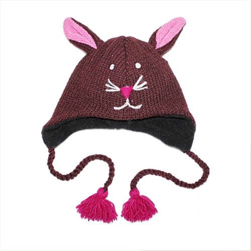 Fairhats - Bonnet animal couleur marron Caractère lapin Fairhats - Bonnet animal couleur marron Caractère lapin, Tricoté dans un style Népalais