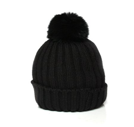Joli bonnet noir avec son pompon en lapin, créateur italien.