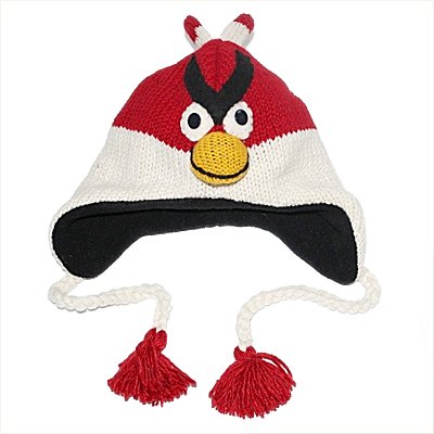 Fairhats - Bonnet animal couleur rouge et blanc Caractère Angry Bird,Tricoté dans un style Népalais