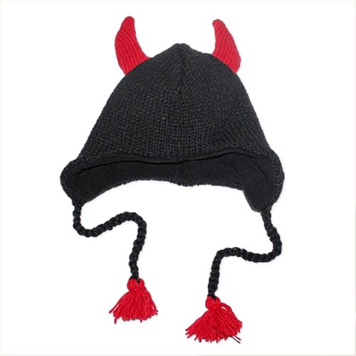 Fairhats - Bonnet animal de couleur noir Caractère devil Tricoté dans un style Népalais