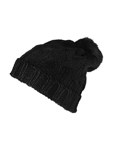 Bonnet de laine - pour femme, élégant, pompon en vraie fourrure de lapinBonnet de laine attractif de Frentani avec dessin couette et un bord large côtelé. Tient chaud la tête et les oreilles. Cet eyecatcher extravagant possède aussi un pompon de la même couleur de vrai pelage doux.