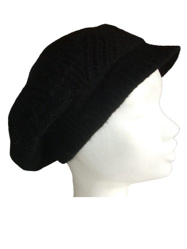 Bonnet Femme galette a visiere en laine angora - Double épaisseur