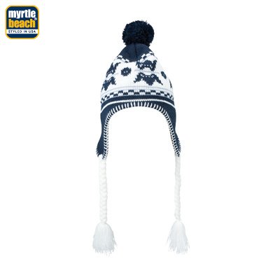 - Bonnet tricot style norvégien / péruvien avec cache oreilles, pompon et nattes