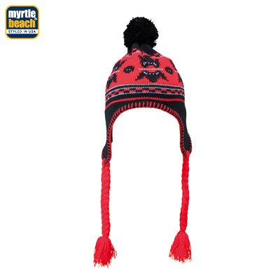 - Bonnet tricot style norvégien / péruvien avec cache oreilles, pompon et nattes