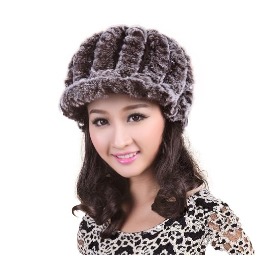 fourrure lapin Il est muni d'un col en fourrure de lapin et d'une patte de laveur d'élevage; avec franges; modèle tricoté; femme Marron Chapka Vraie Fourrure Lapin.